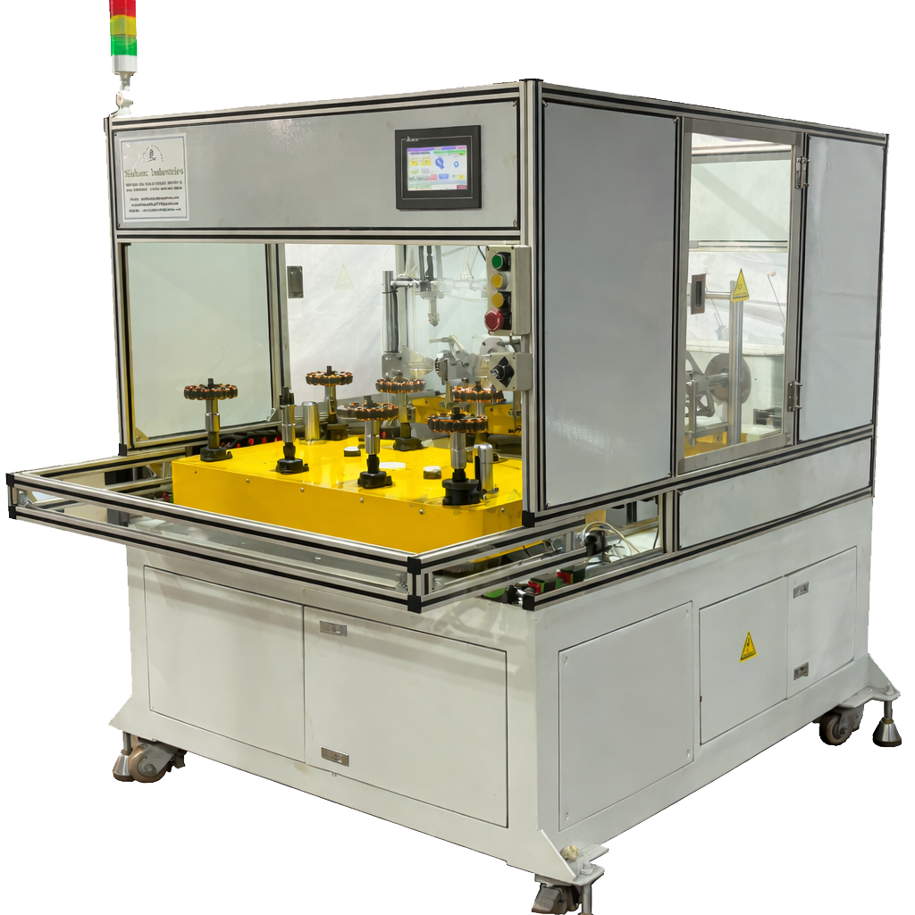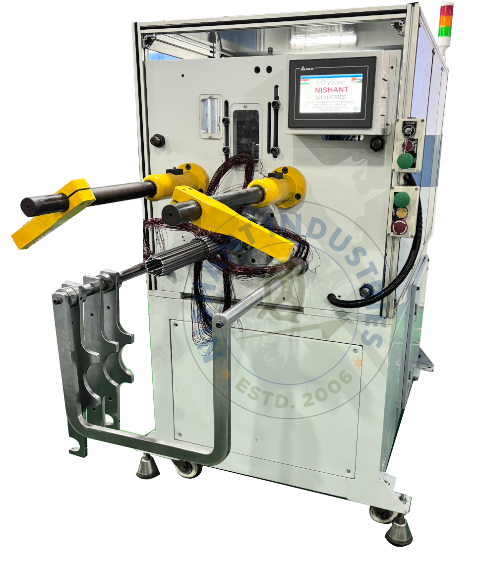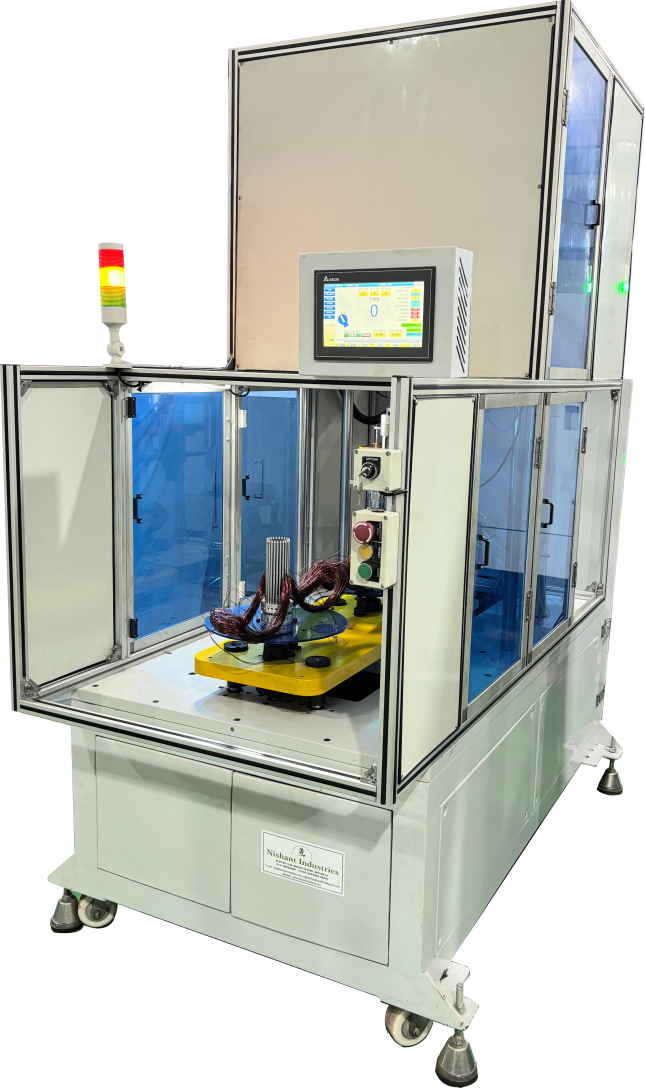 Today, NISHANT INDUSTRIES is fully qualified to design and manufacture complete motor production lines, starting from coil winding through to final stator forming. These solutions cater to a wide range of AC motors, including: